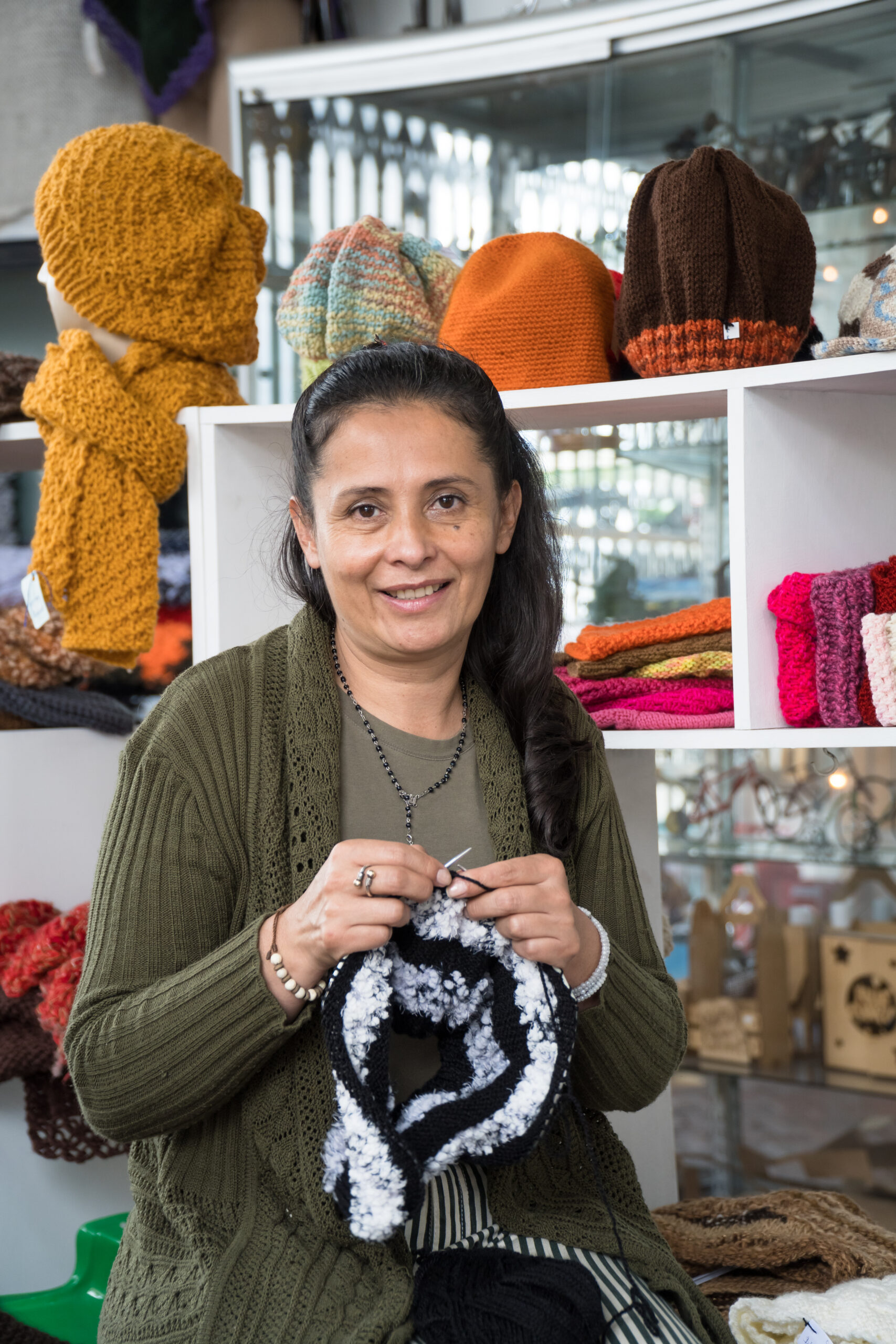 En las tardes entre charlas y puntadas con sus amigas tejedoras se inspira para crear nuevos diseños que con paciencia han ido elevando el nivel de su técnica.